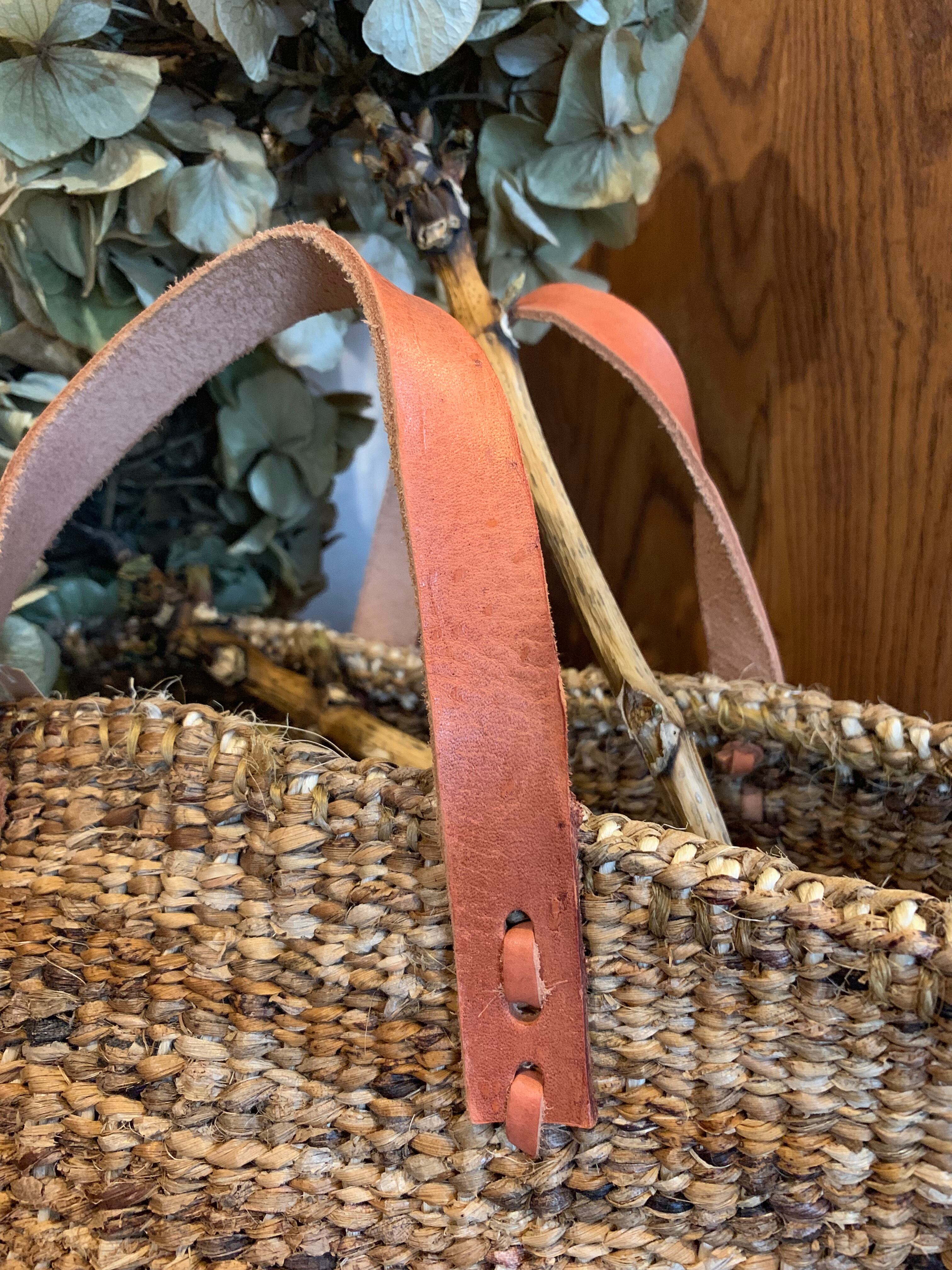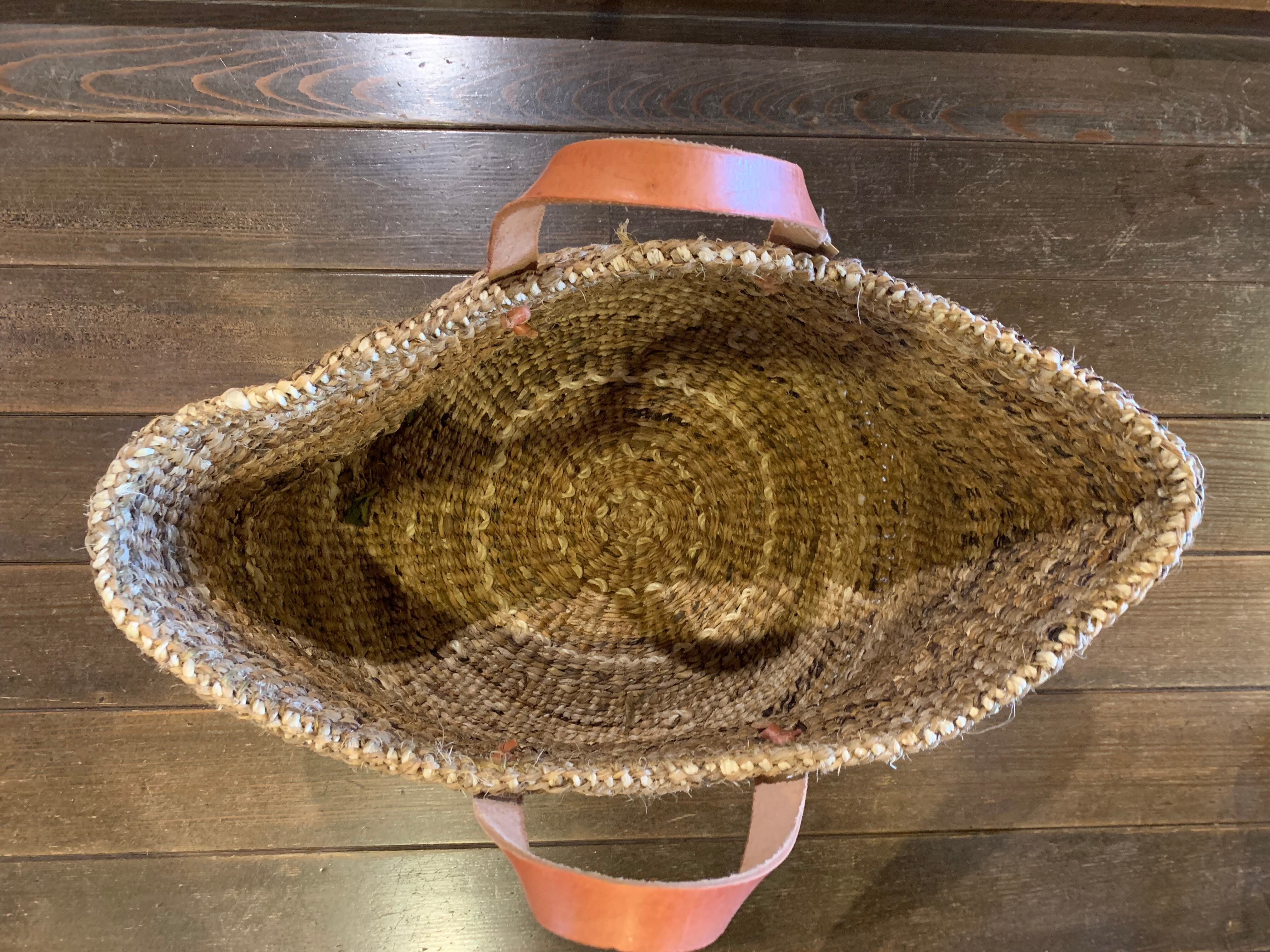平革のハンドルも持ちやすく機能性にも優れています。現地ケニアのカンバ族の方がバナナの樹皮を手間をかけて編み上げたバックです。