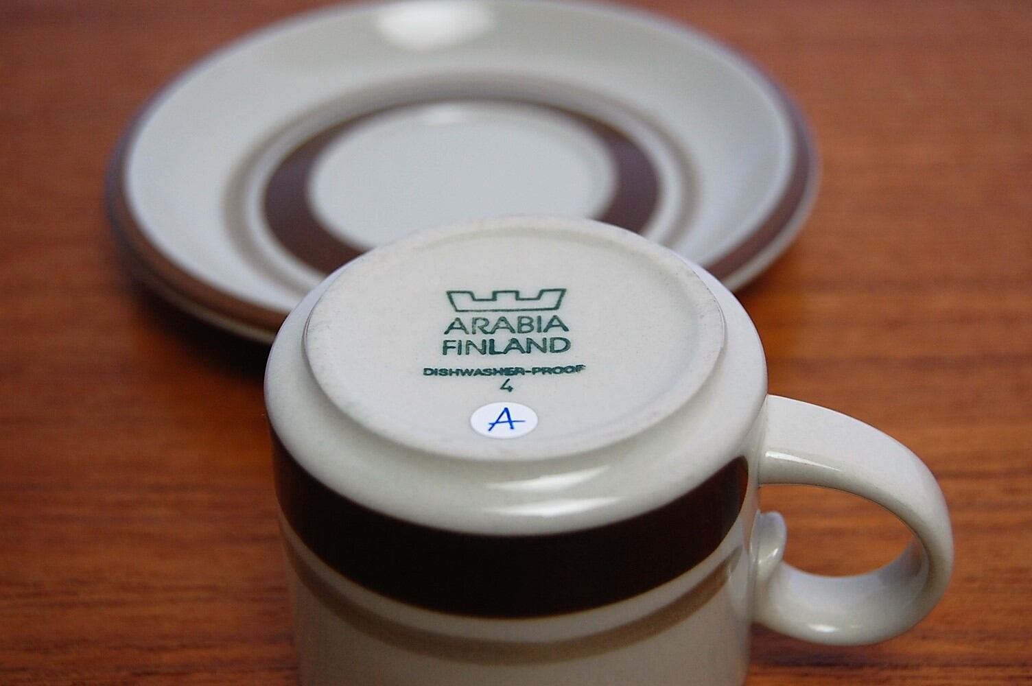 カップとソーサーどちらにも、刻印はしっかり残っています。