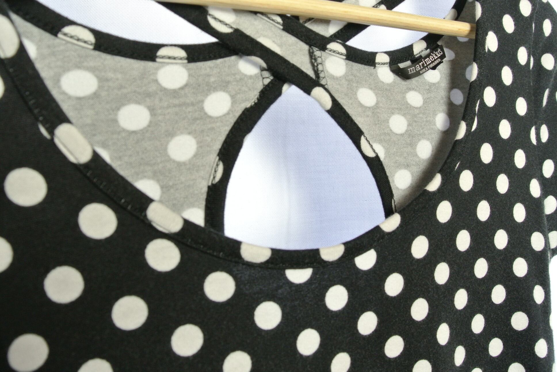 marimekkoでは珍しいバッククロスTシャツで、女性らしく着こなせます。