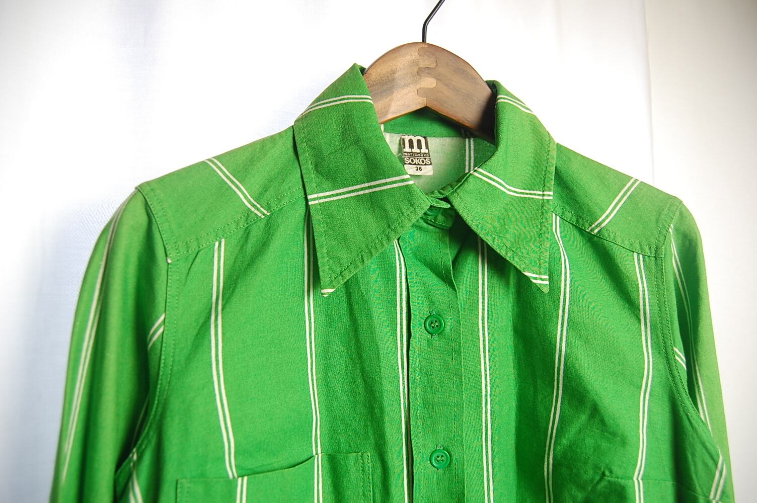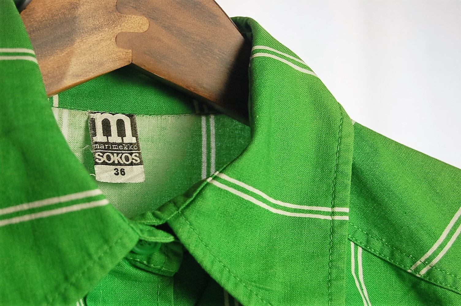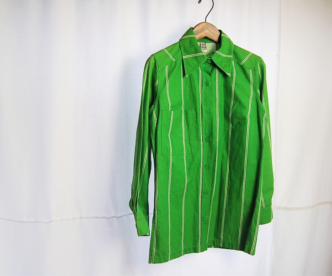 マリメッコらしい色鮮やかなグリーンが印象的なヴィンテージのシャツです。