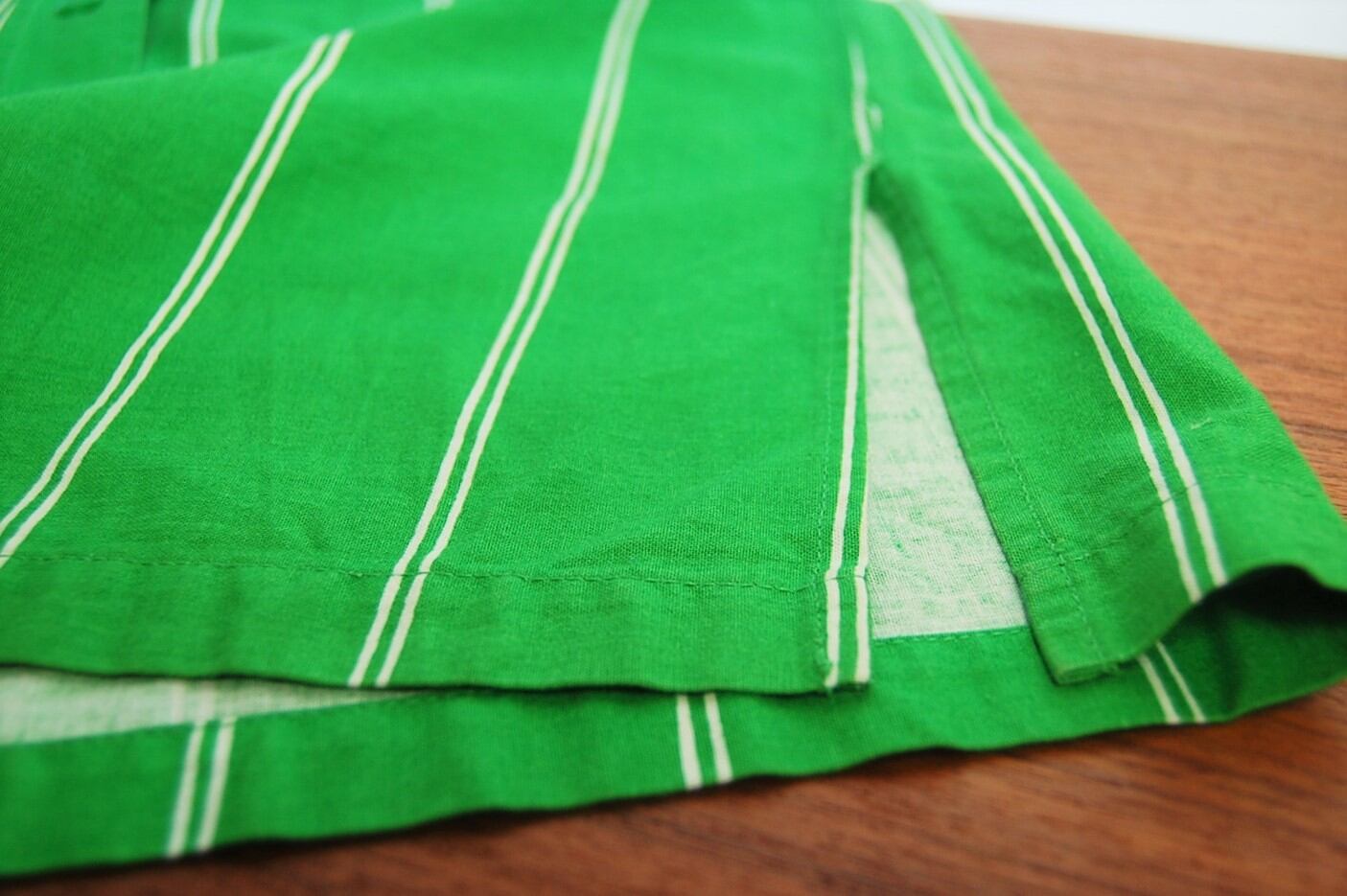 ボタンも生地と同じ鮮やかさのグリーン。