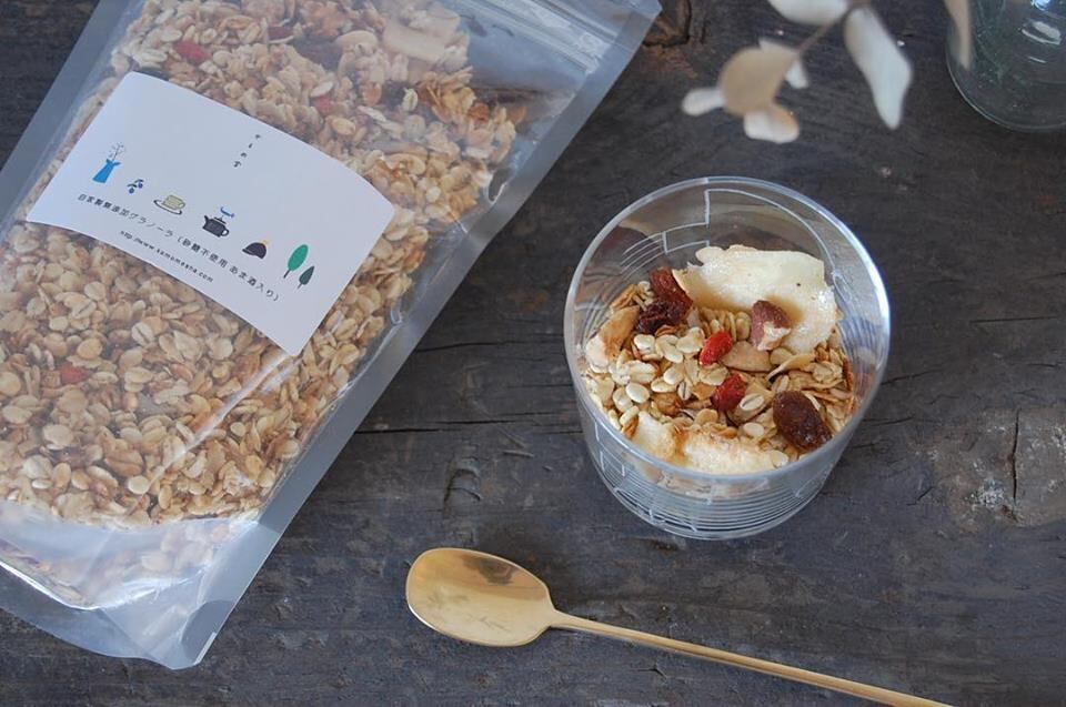 [原材料]押麦、オートミール、甘酒、アーモンド、ピーカンナッツ、菜種油、はちみつ、クランベリー、バナナチップ、ひまわりの種、かぼちゃの種、クコの実、松の実